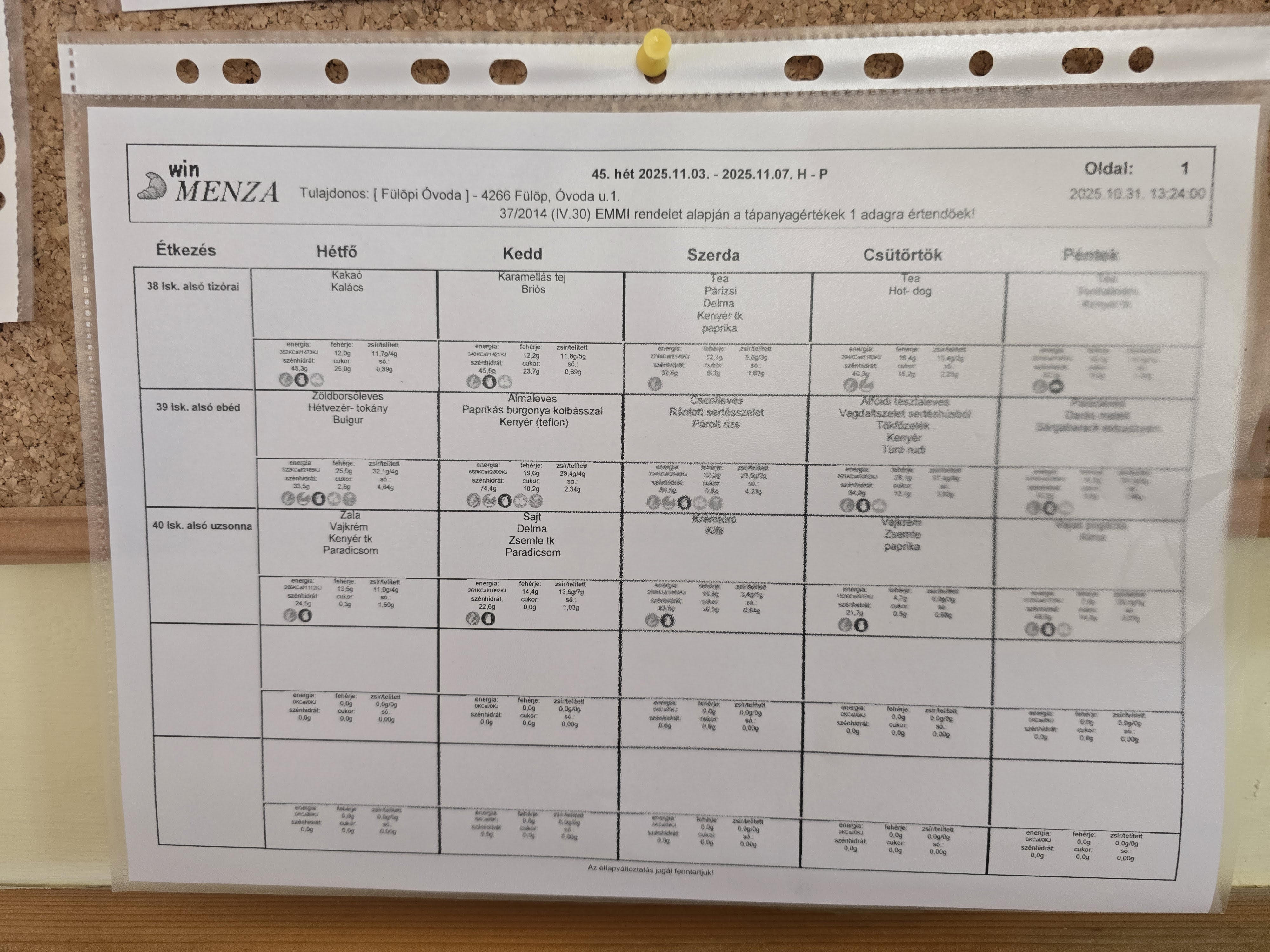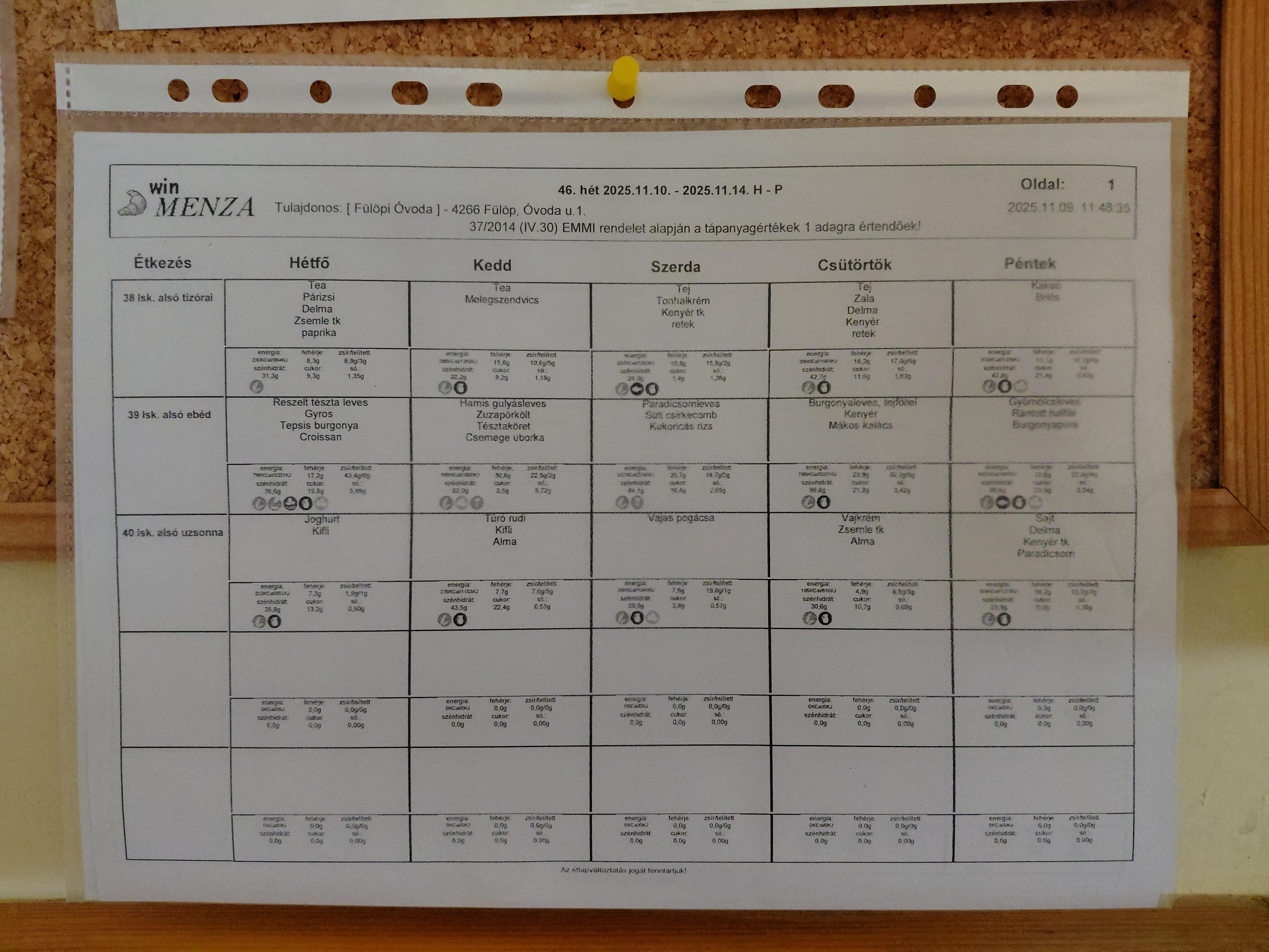 Menza tájékoztató